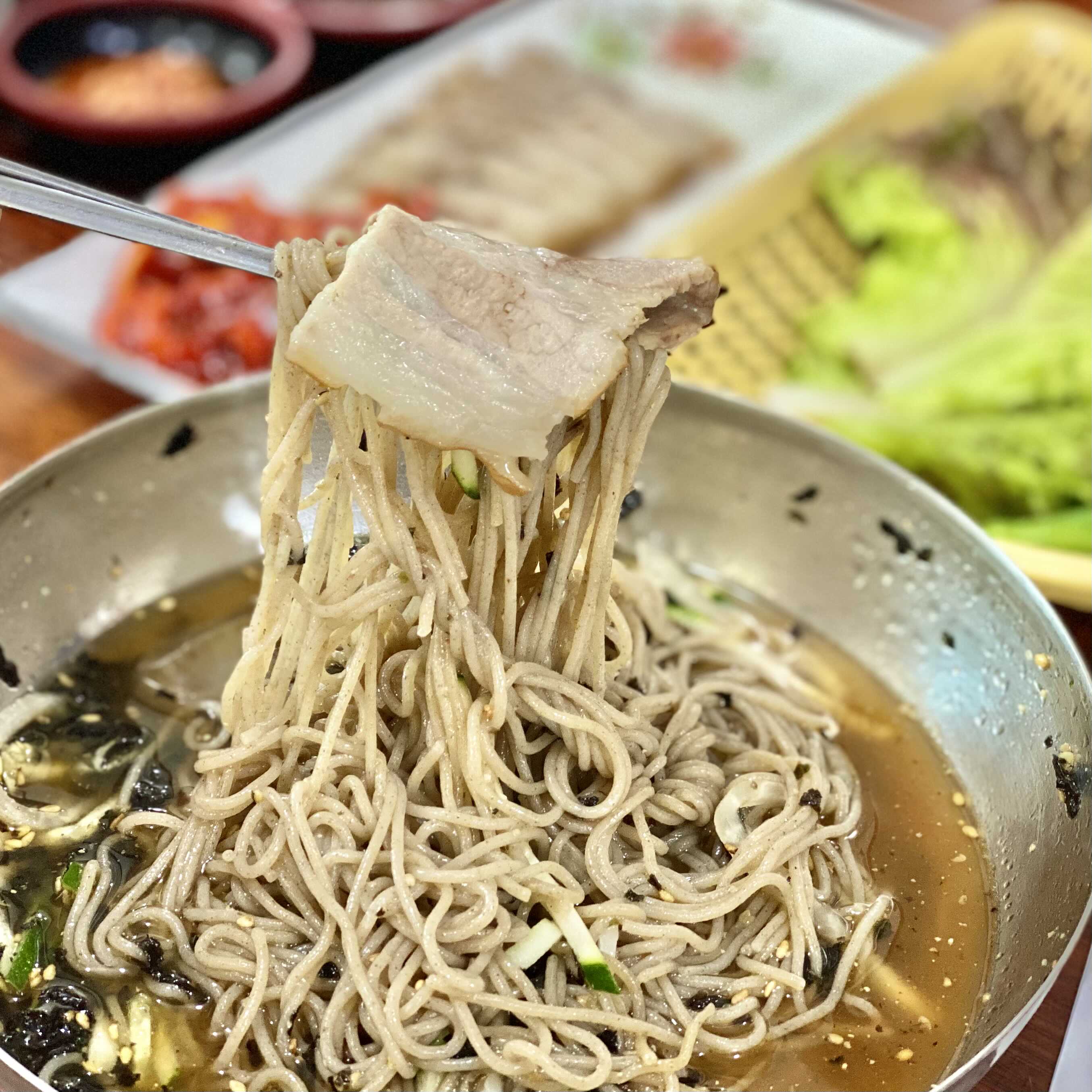 수육은 매우 얇은 편이었는데요. 따끈따끈하게 나와서 참 맛있더라구요. 양이 많은 편은 아니었지만 막국수에 곁들이기는 꽤 괜찮았습니다.