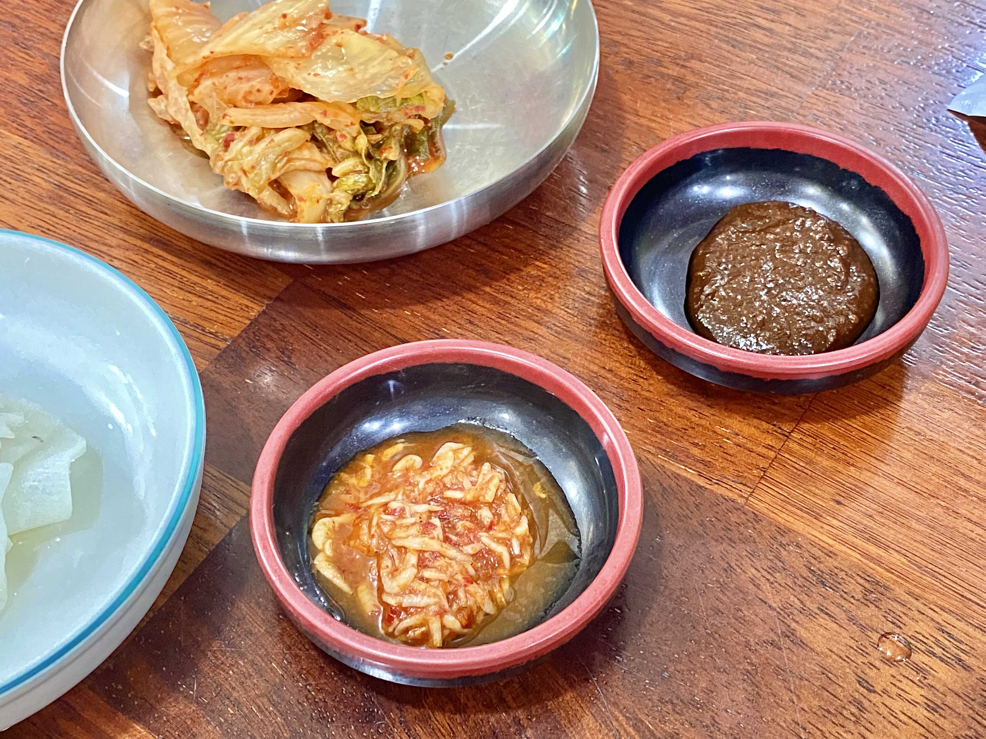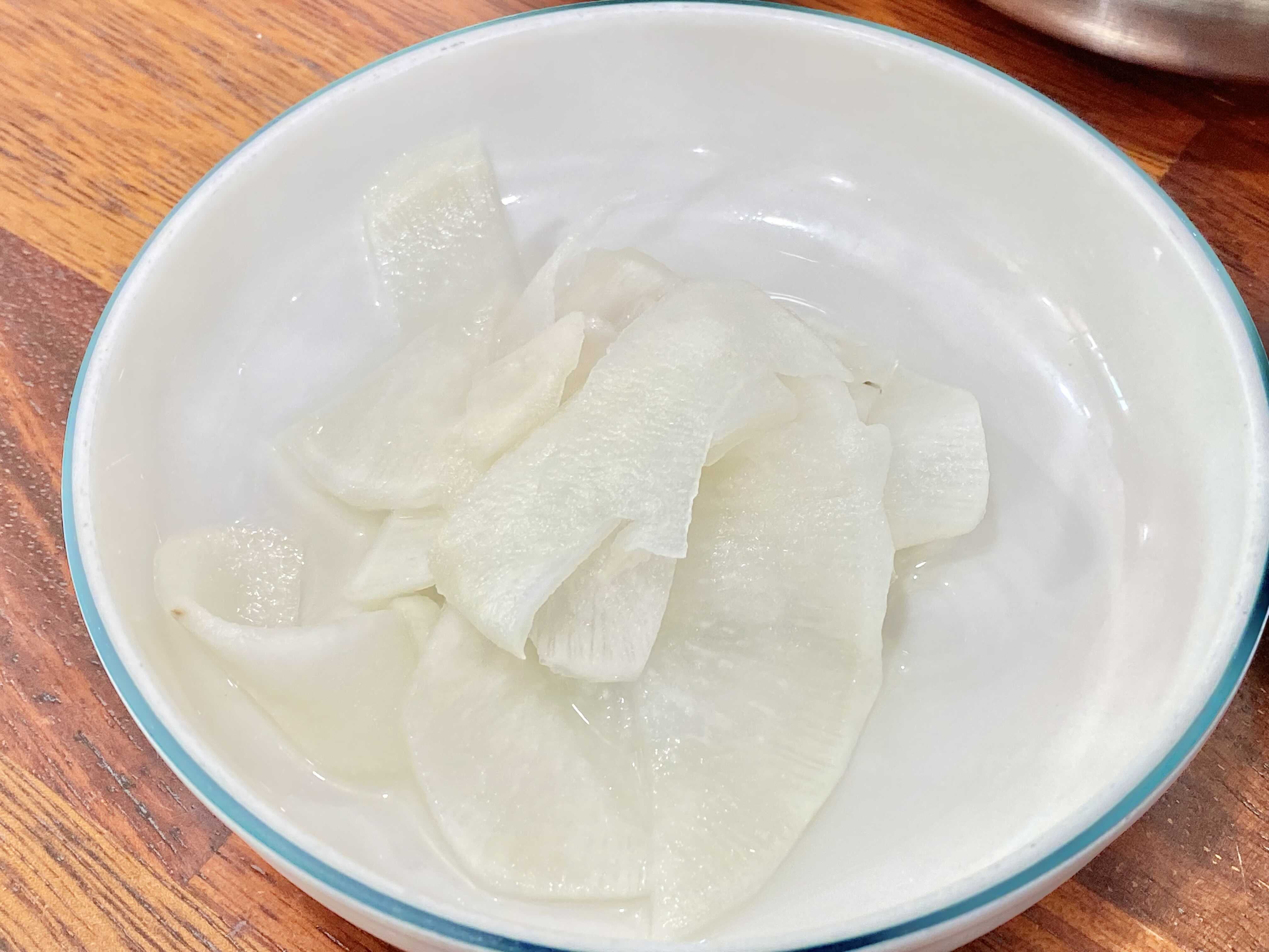 기본 반찬은 수육을 시켜서 그런지 상추쌈과 함께 김치, 무가 나왔어요.