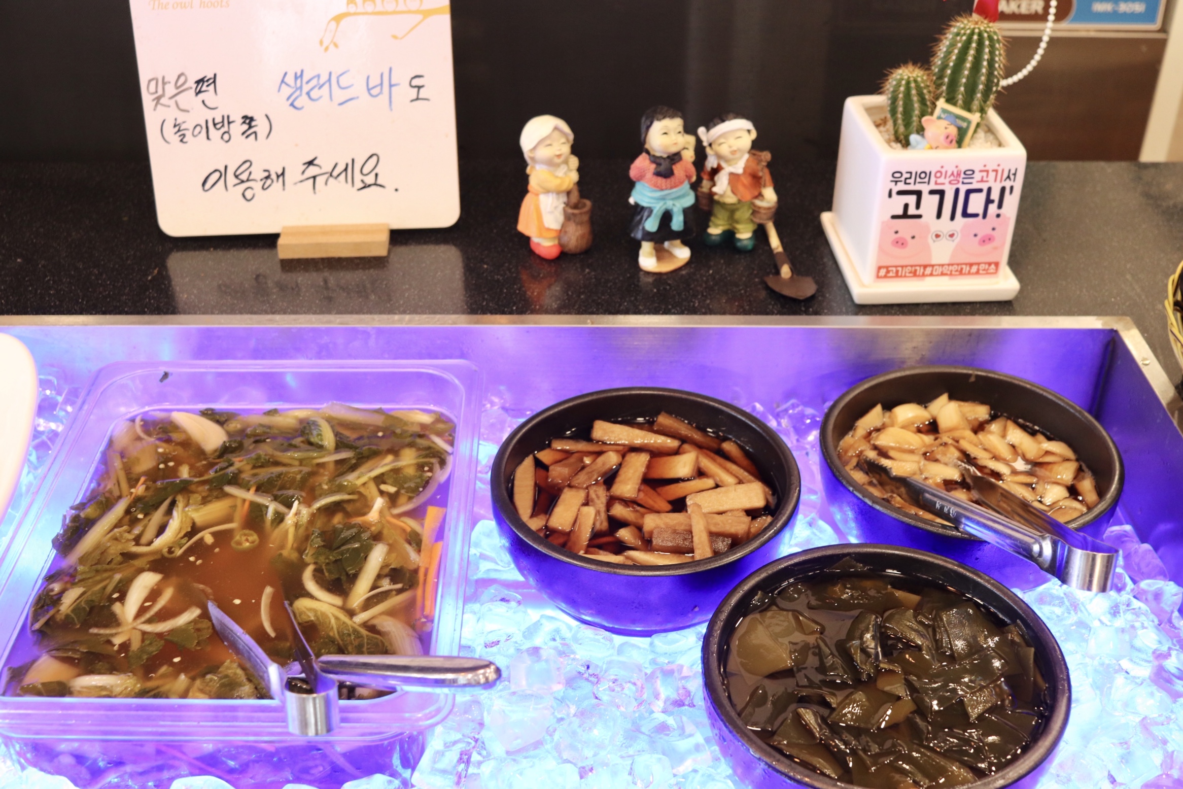 샐러드바에는 쌈채소, 마늘, 양념장